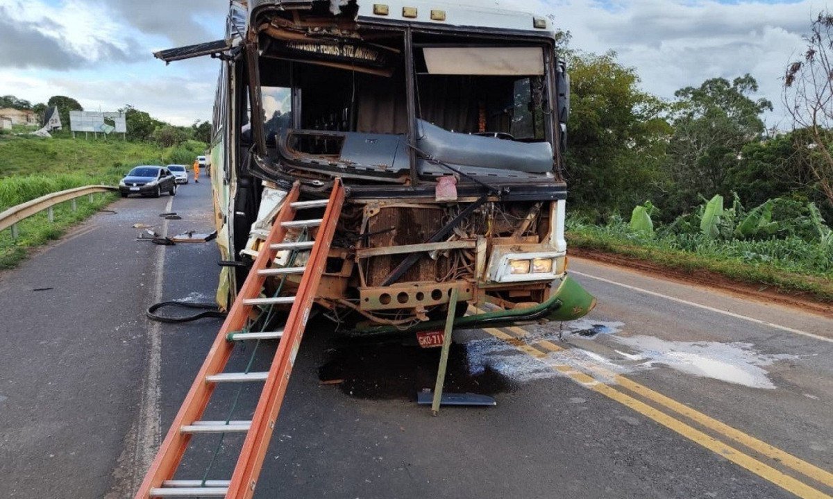 Quatorze pessoas ficam feridas em batida entre ônibus e caminhão