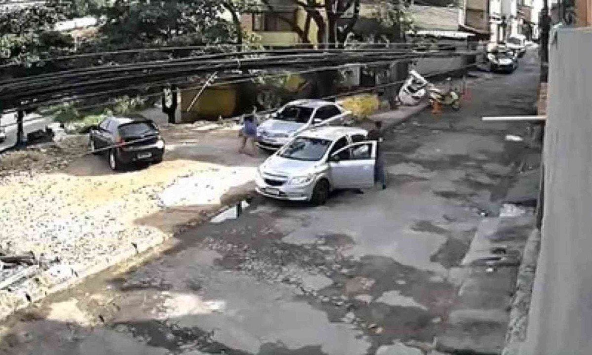 Em vídeo de uma câmera de segurança da região, é possível ver quando o homem desce de um carro com a barra de ferro, sai correndo atrás da mulher e começa a agredi-la com o objeto. Ela tenta fugir do ex-namorado, mas cai em via pública e é alcançada por ele.