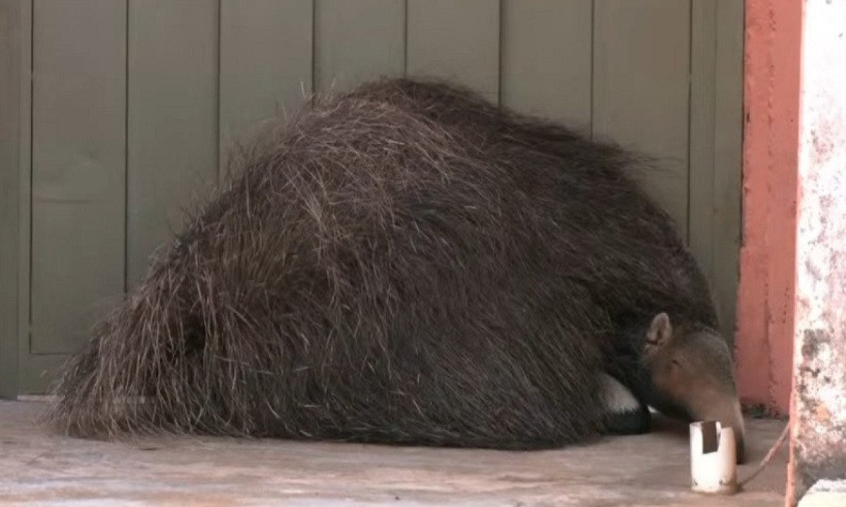 Um tamanduá-bandeira foi capturado no meio da área urbana de Uberlândia, na manhã desta terça-feira (27/1). O animal não tinha ferimentos e aparentava estar apenas perdido, chegando a dormir na porta de uma casa no bairro Tocantins, na Zona Oeste da cidade.