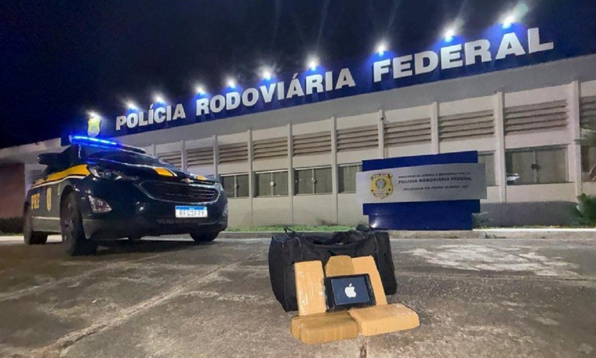 Ao realizarem a fiscalização, no interior do veículo, os policiais localizaram uma mala com as drogas e identificaram a passageira, que foi presa.