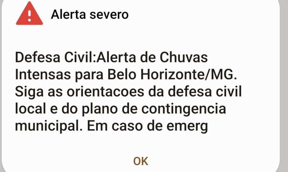 A Defesa Civil de BH emitiu um alerta para chuvas intensas e granizo na capital mineira nesta quinta-feira (29/1).