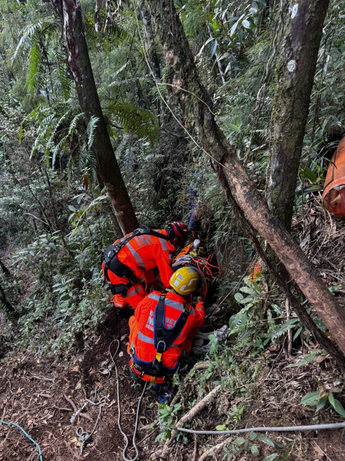 Uma vez que o terreno era acidentado e de acesso difíciil, foi preciso usar técnicas de salvamento em altura e terrestre para retirar o homem do barranco. Os militares o estabilizaram e montaram um sistema de redução de forças para poder içá-lo.