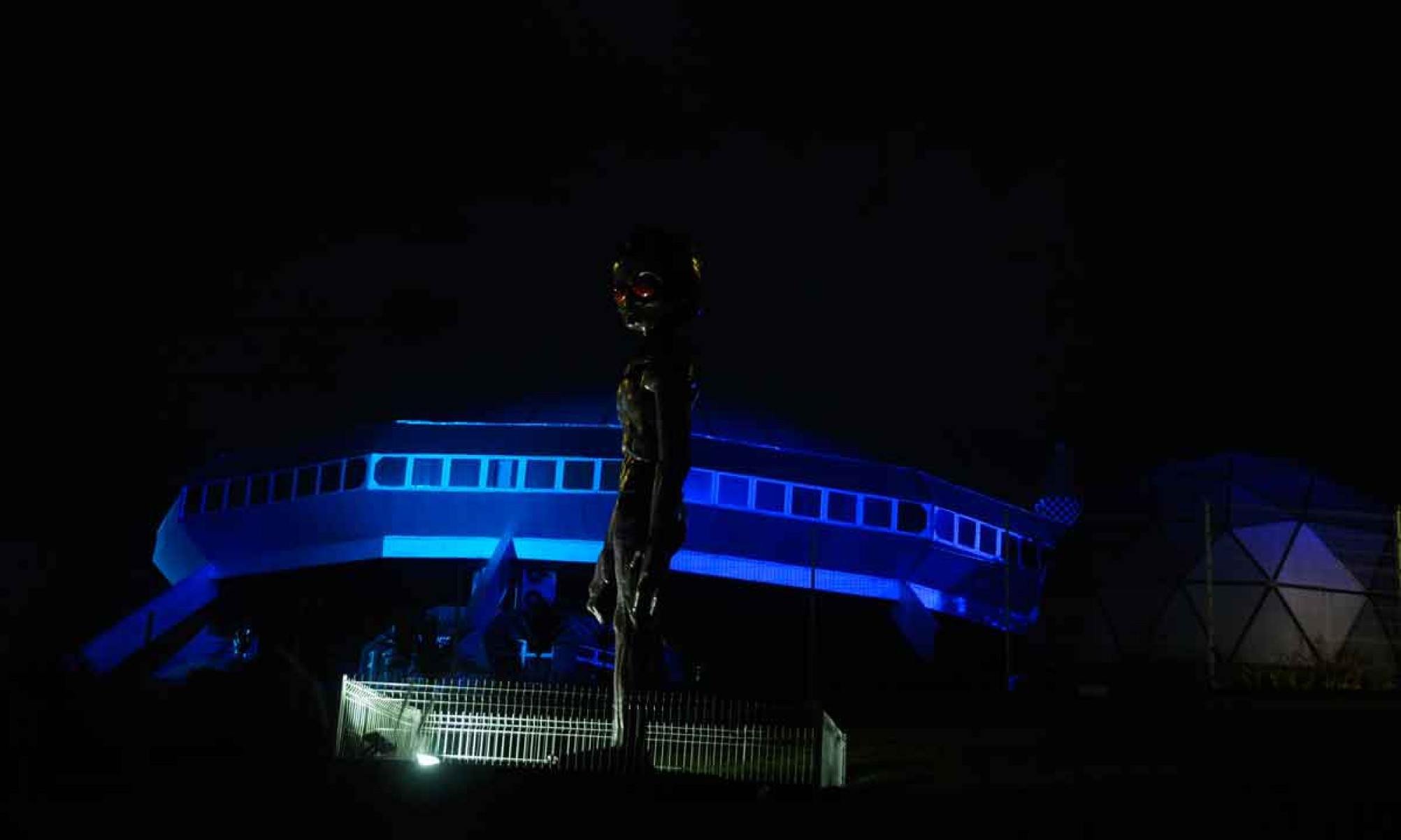 O memorial também tem estátuas variadas do ET, com opções mais lúdicas e versões que seguem a descrição feita pelas três meninas naquele 20 de janeiro de 1996. Há também opções de cenários para tirar fotos, incluindo uma recriação da cena em que o ser extraterrestre teria sido visto, e diversos elementos que remetem à temática intergaláctica, como naves espaciais e planetas. É esse cenário que conquista as crianças.
