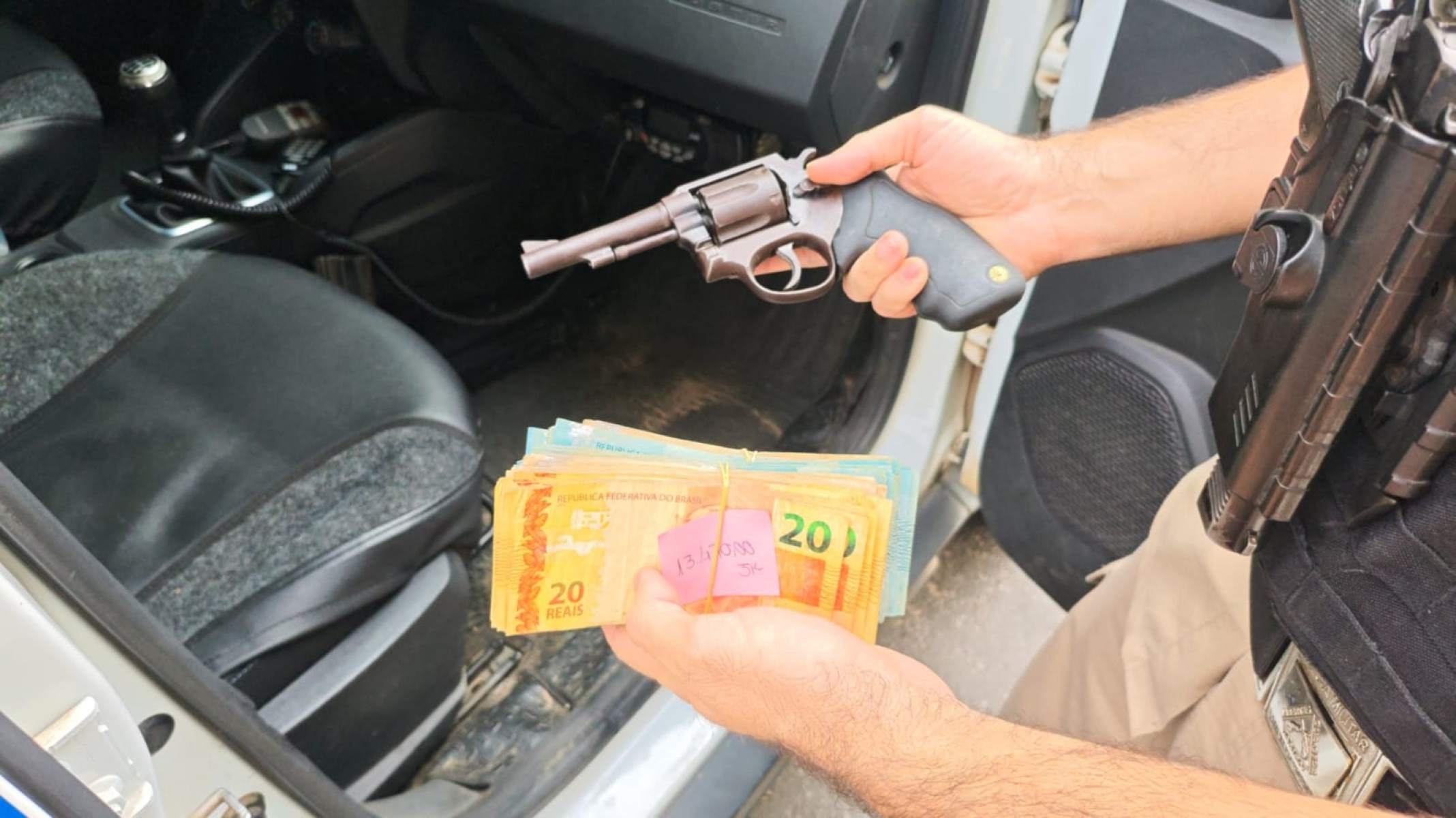 Conforme os registros, o homem foi alcançado e detido por populares, sendo encontrado lesionado pelos militares em um bairro vizinho, ao lado do estacionamento de um supermercado. Ele portava uma arma de fogo de calibre .38, usada no momento do roubo, e tinha todo o dinheiro da vítima.