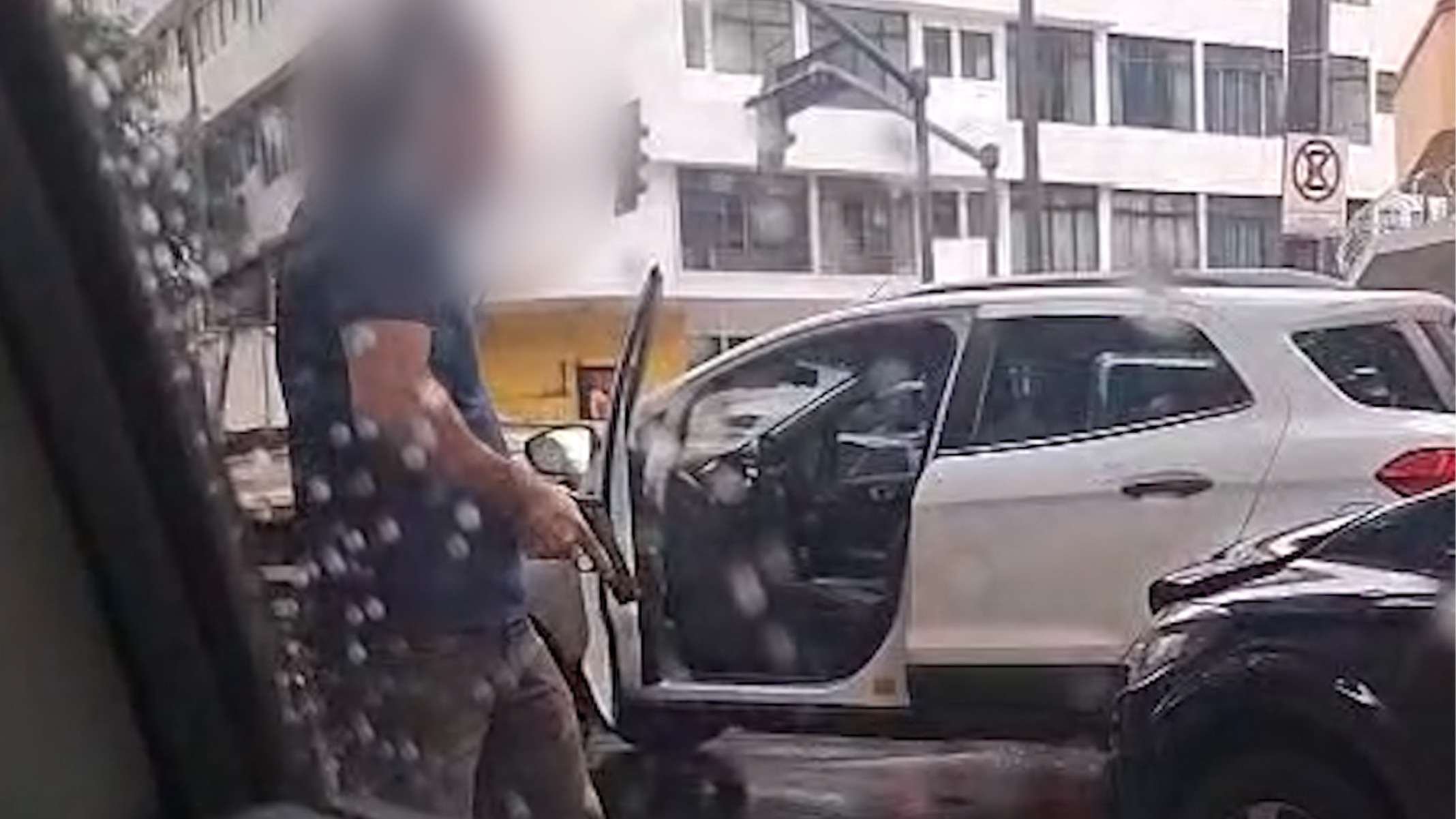 Vídeos divulgados nas redes sociais mostram o coronel armado com uma pistola e discutindo com um homem que estava em um carro Ford EcoSport Branco parado, atravessado na pista do meio da avenida.