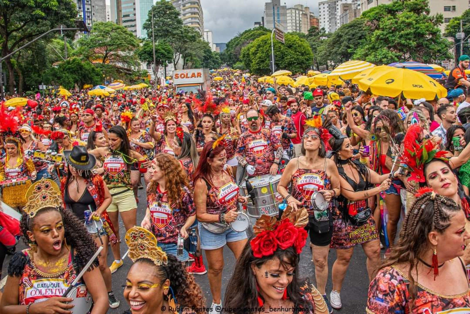 No meio desse mar de gente, um dos destaques é o Bloco Batuque Coletivo. Com seu repertório que mistura de tudo um pouco e uma bateria que faz o chão tremer, o bloco já é um dos queridinhos da capital mineira.