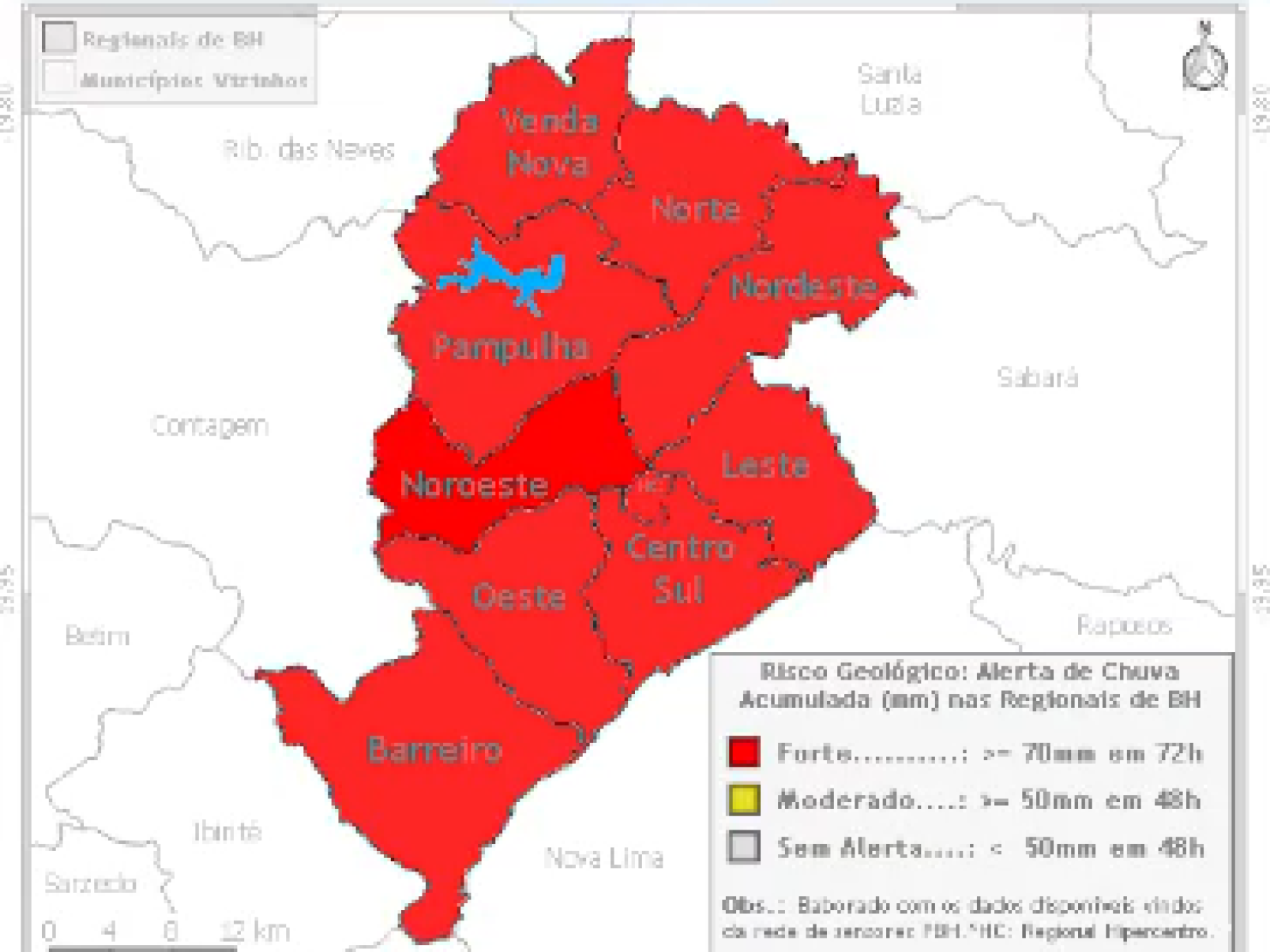 Todas as regionais de Belo Horizonte seguem em alerta para risco de deslizamentos e desabamentos em razão do grande volume de chuva registrado nos últimos dias.