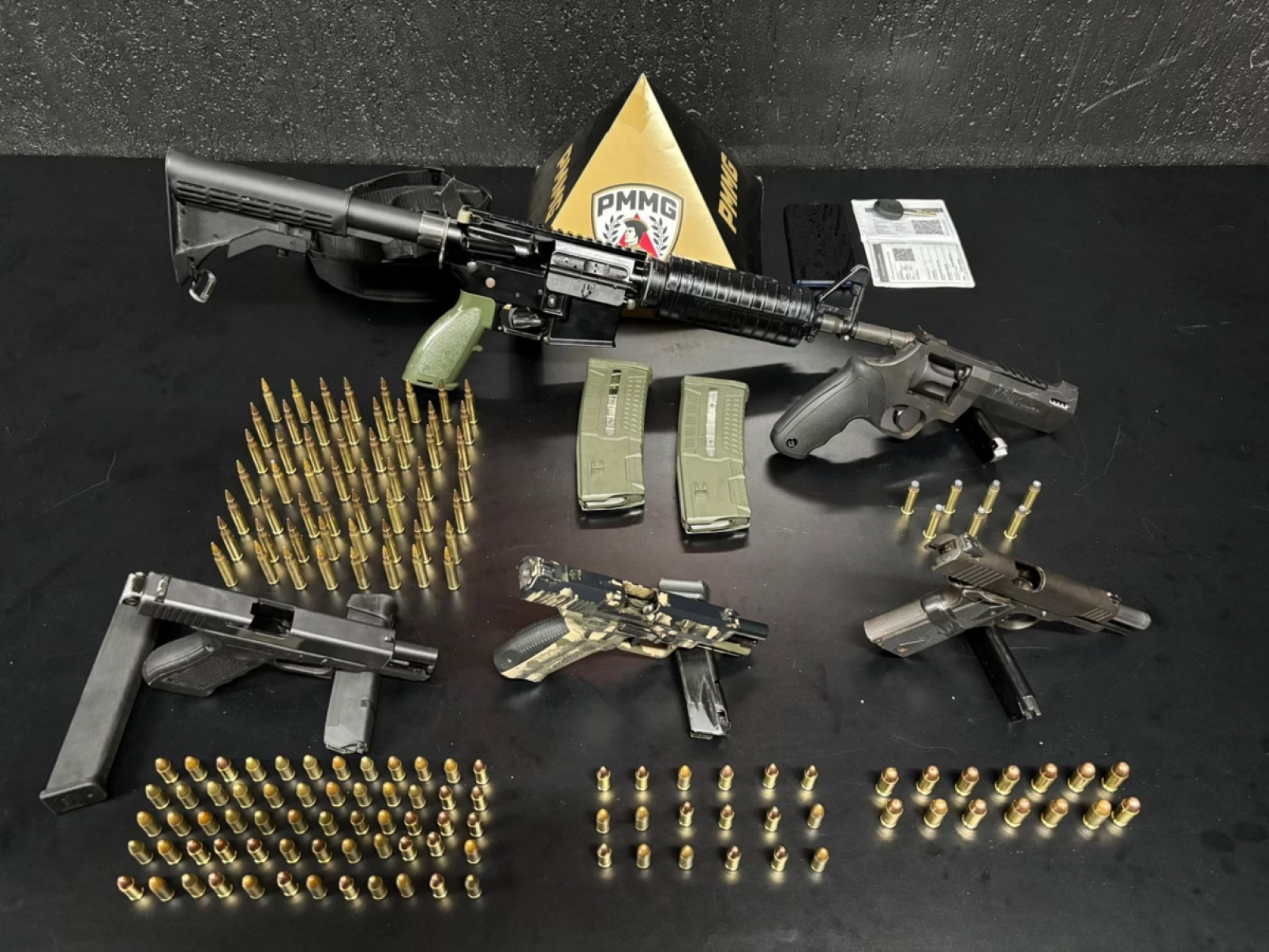 O armamento foi apreendido, junto com três aparelhos celulares. Além disso, o carro usado por eles havia registro de furto, em 20 de janeiro, em Betim, na Região Metropolitana de BH.