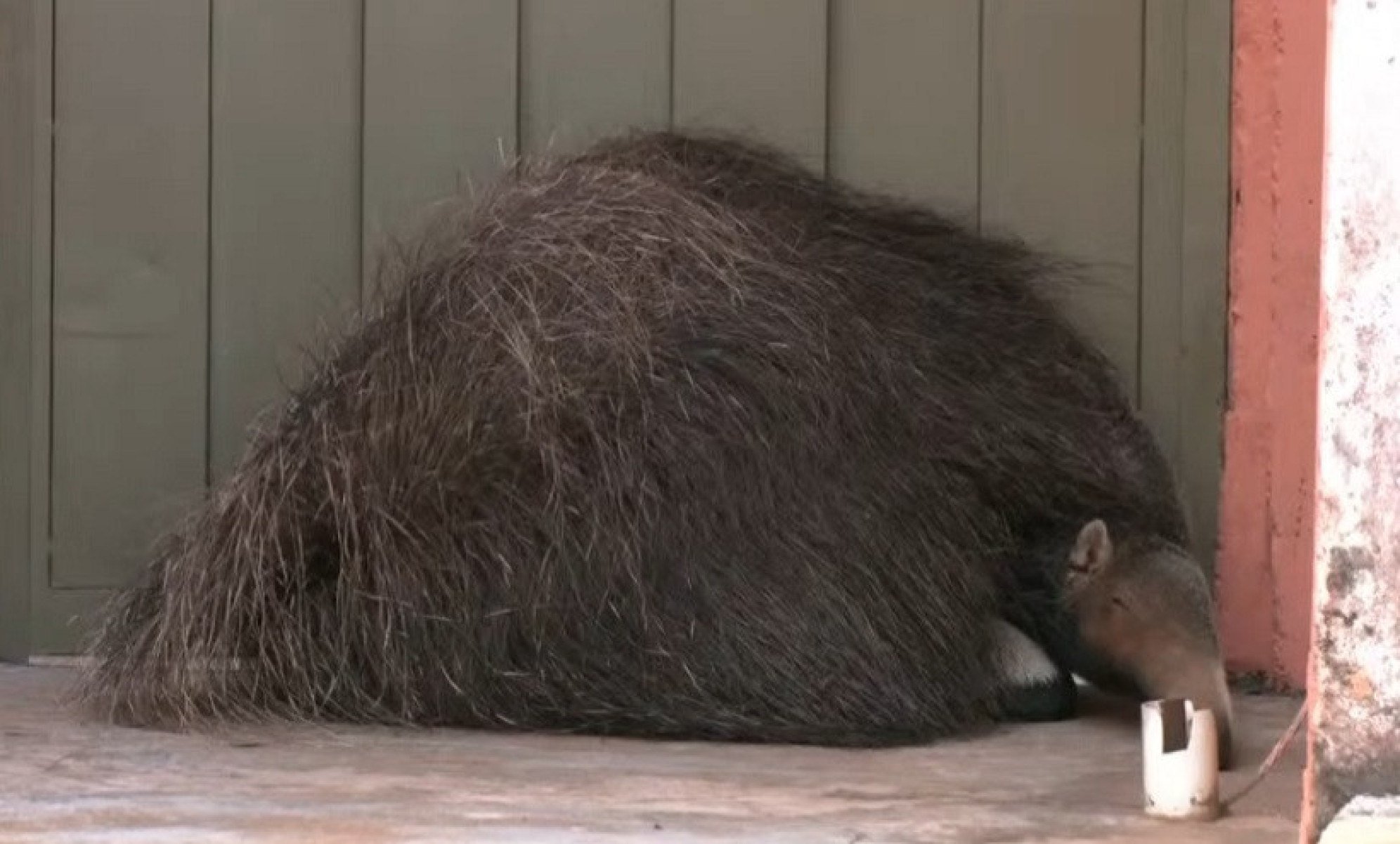 A soneca foi perturbada com a chegada dos militares. Os bombeiros aproveitaram que a entrada da casa é recuada e fizeram uma barreira com uma gaiola. Com laços, conseguiram induzir o tamanduá a entrar na armadilha.