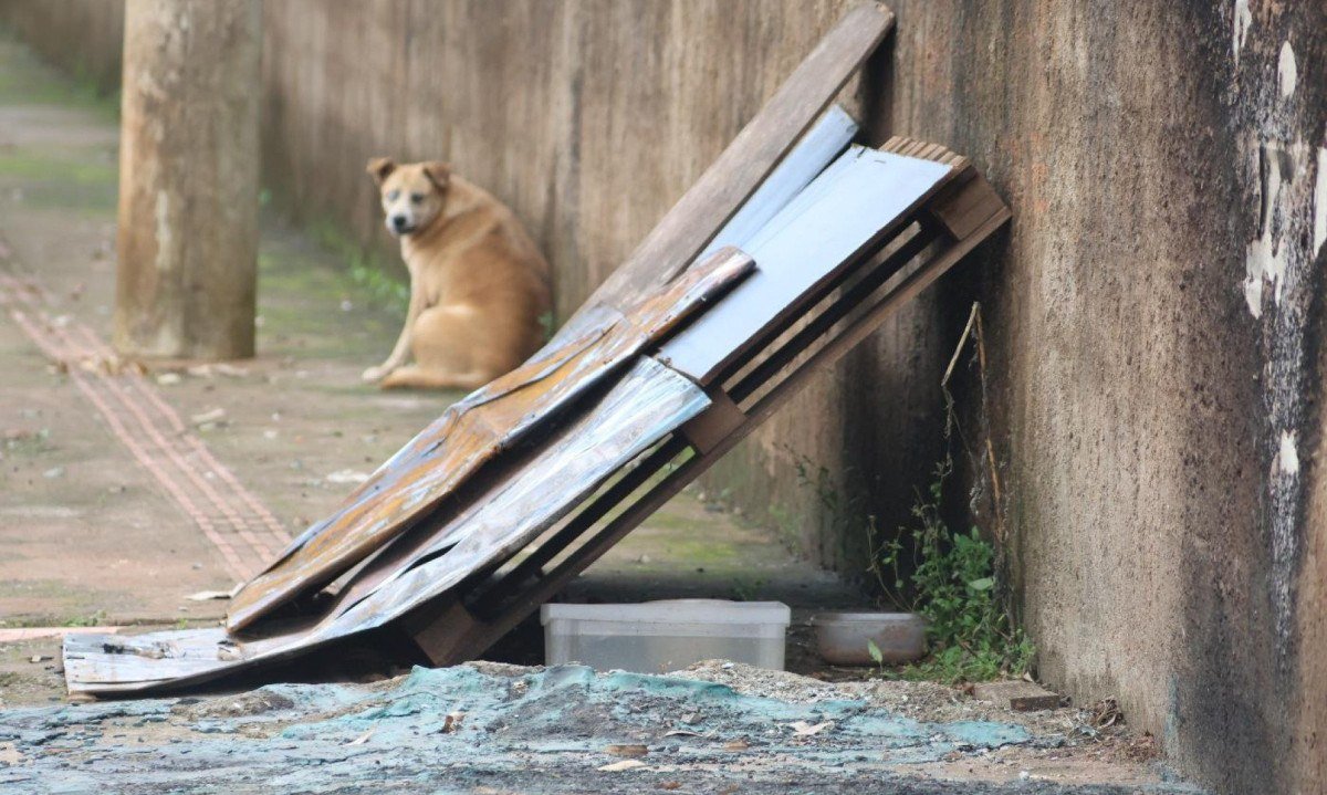 Ficou o registro do fogo nas paredes e em alguns telhados improvisados, que formavam uma cobertura para permitir que os cachorros se abrigassem da chuva. Uma vasilha com água foi colocada no local para os animais.