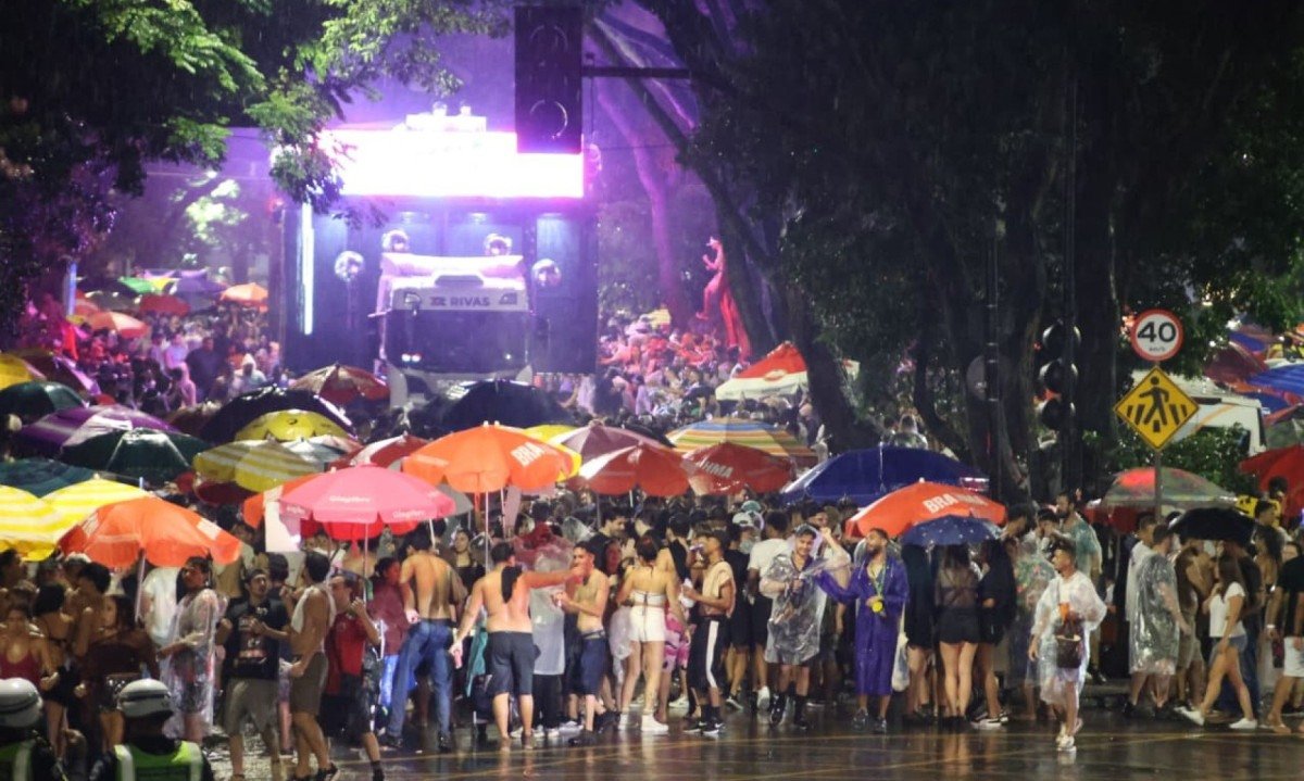 De acordo com a Defesa Civil de BH, a Região Centro-Sul da cidade, onde ocorre o CarnaKvsh, registrou 38mm de chuva entre 14h20 e 18h20 deste domingo. Essa foi a terceira regional com maior volume de precipitação nesse período, atrás apenas da Região Noroeste, com 57mm, e Oeste, com 41,2mm.