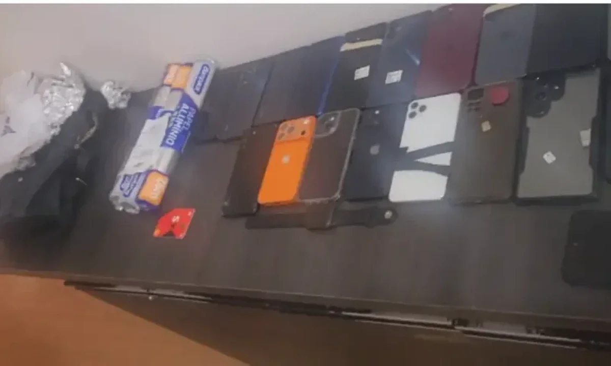 Com a intenção de bloquear o sinal, os suspeitos embrulharam vários telefones com papel alumínio. A prática já é conhecida e usada também em tornozeleiras eletrônicas.