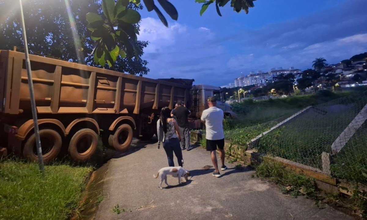 Carreta invade pista de caminhada no Barreiro, em BH