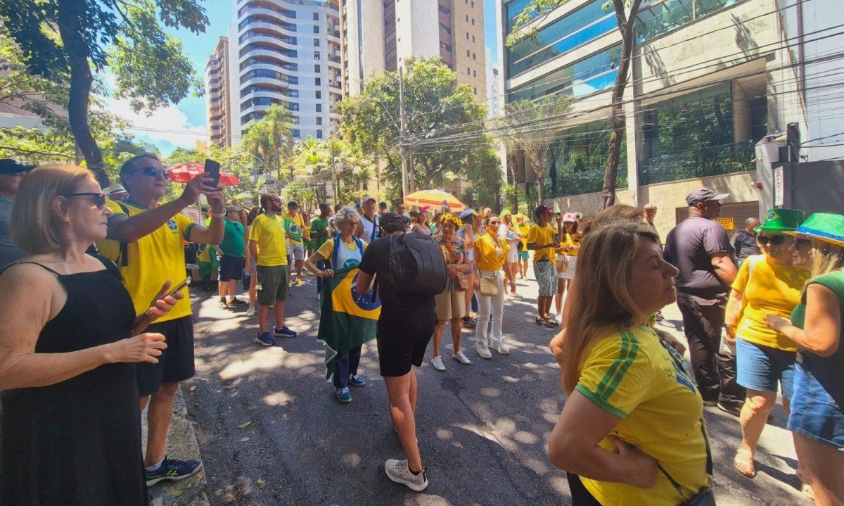O bloco pede a libertação do ex-presidente e de todos os condenados pela tentativa de golpe em 8 de janeiro de 2023. Um grupo de cerca de 20 policiais militares acompanha a concentração que, até agora, reuniu um grupo pequeno de pessoas.