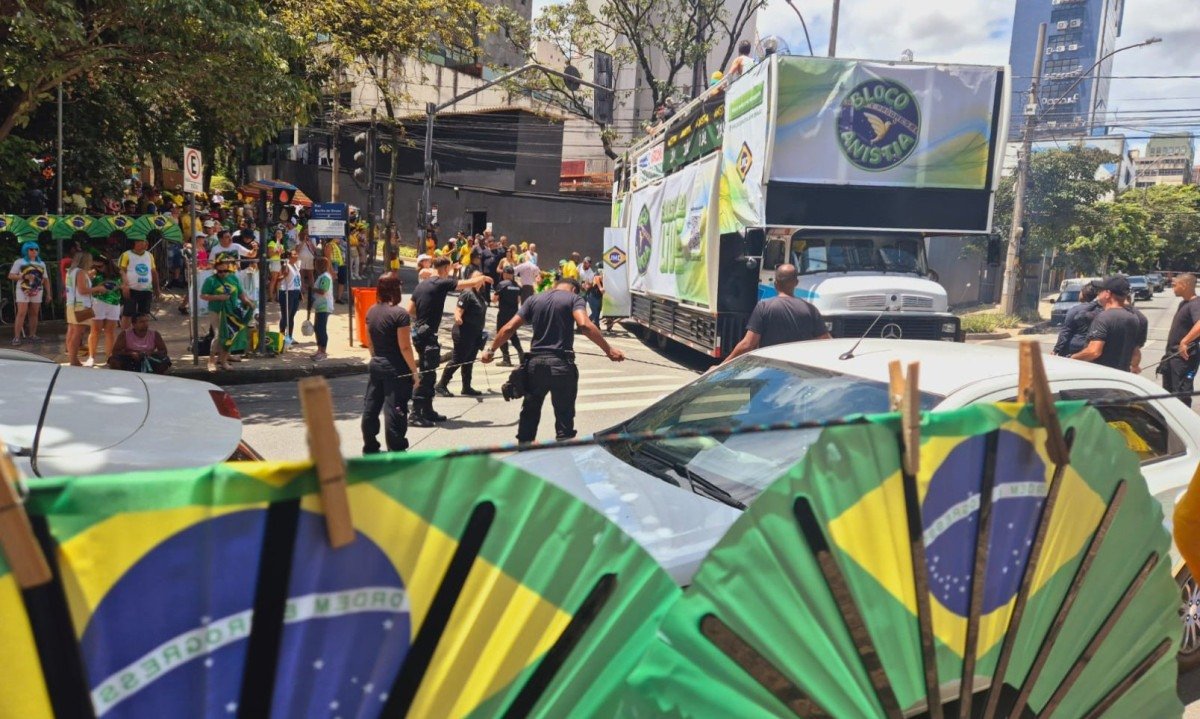 O bloco pede a libertação do ex-presidente e de todos os condenados pela tentativa de golpe em 8 de janeiro de 2023. Um grupo de cerca de 20 policiais militares acompanha a concentração, que até agora reuniu poucas pessoas.
