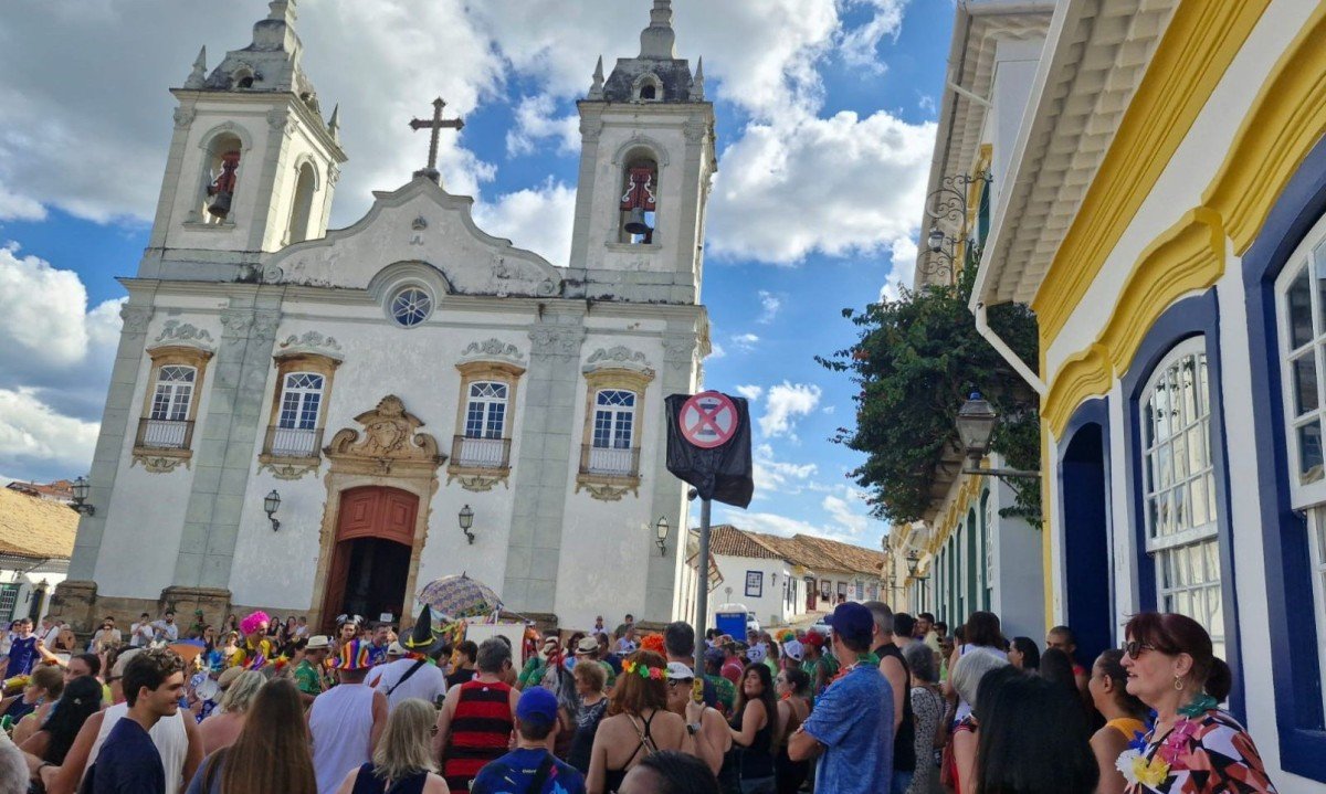 O bloco Carnaval de Antigamente desfilou pelas ruas históricas de São João del-Rei, no Campo das Vertentes, neste domingo (15/2), com instrumentos de sopro e de percussão puxando marchinhas.