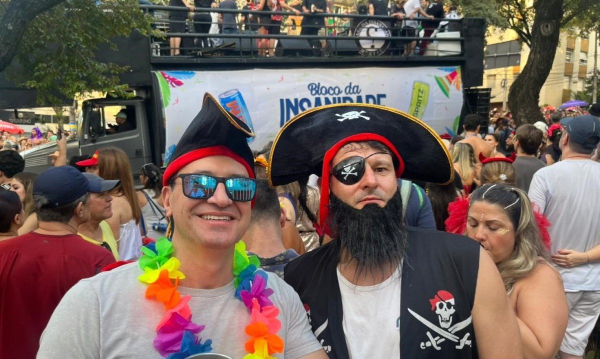 O Bloco Insanidade desfilou pela Avenida Afonso Pena, no Centro de BH, na tarde deste domingo (15/2), com temática inspirada em piratas e repertório voltado ao rock.
