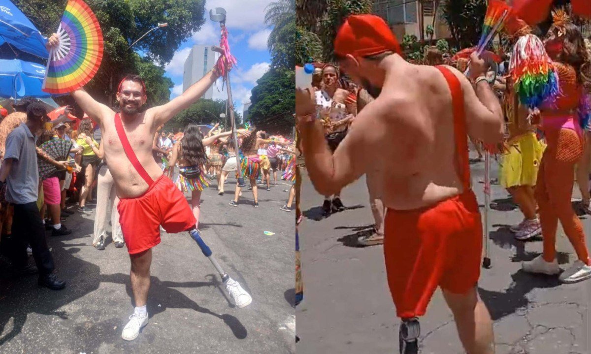 “Adoro carnaval. Achei que nunca mais ia conseguir dançar, mas agora estou aqui dançando tudo. Viva o carnaval, viva a vida”, afirmou Cadu, que defende a inclusão cada vez maior nos blocos de Belo Horizonte.