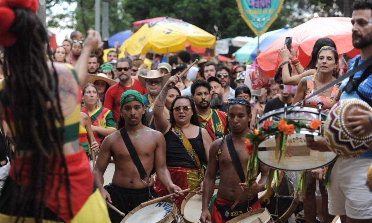 O bloco conta com guitarras, teclado, baixo e vozes, que se unem a 30 percussionista no decorrer do cortejo Alexandre Guzanshe/EM/D.A/Press
