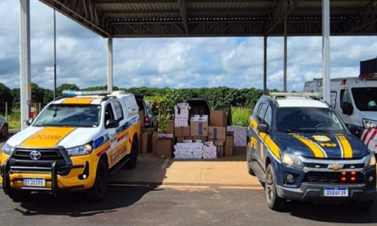 Operação da PM e PRF apreende maços de cigarro de origem paraguaia