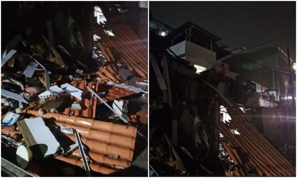 Em outro vídeo do Bairro Cerâmica, um morador mostra imóveis que também tiveram danos. Segundo ele, há pessoas presas nos escombros.