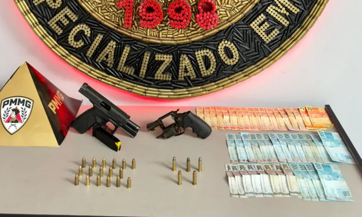 Na ocorrência, foram apreendidos um revólver calibre .38, uma pistola calibre 9 milímetros, munições, R$ 4.240 em dinheiro e uma picape Fiat Strada vermelha. O caso foi encaminhado para a delegacia da Polícia Civil em Contagem.