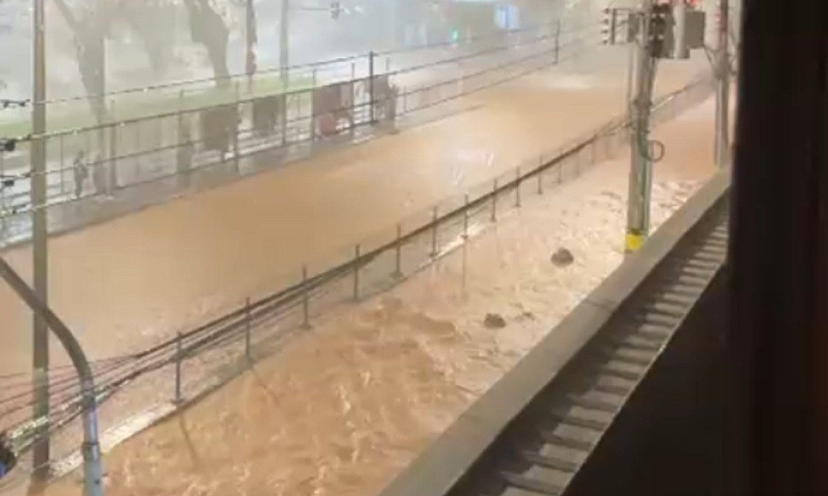 Diferentes pontos da cidade, inclusive na área central, estão inundadas. Prefeitura pede que as pessoas não saiam de casa