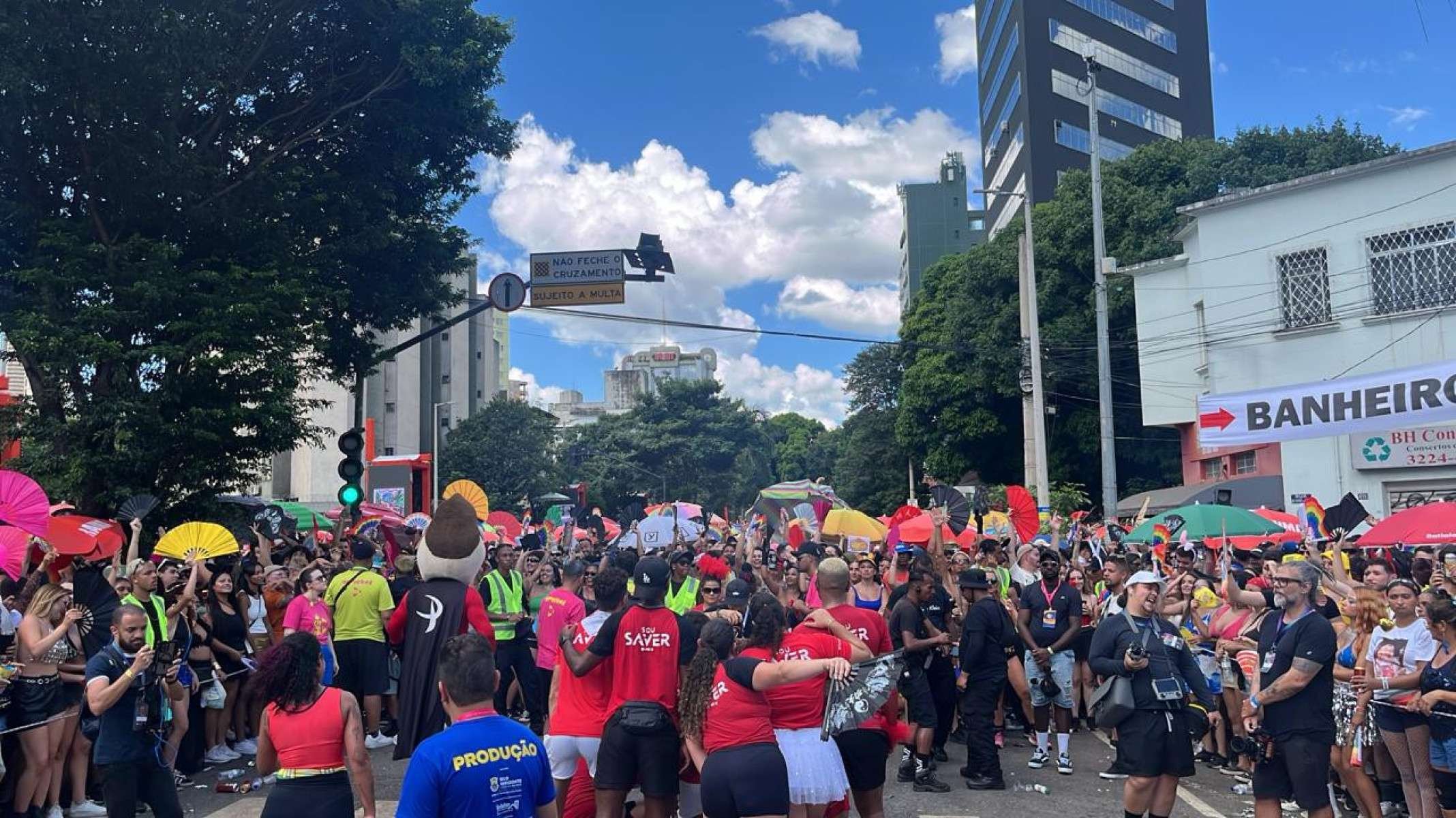 Entre os participantes, a recomendação tem sido buscar sombra e manter a hidratação para suportar o calor e o ritmo intenso da festa.