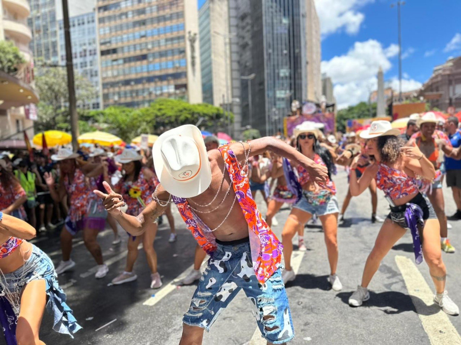 Sob um sol escaldante nesta terça-feira de carnaval, milhares de pessoas vibraram ao som de hits que atravessam gerações e estilos na Avenida Amazonas, em Belo Horizonte. Em meio à festa, já em êxtase, o som de um berrante deu o pontapé inicial para o funknejo, arrancando gritos do público e anunciando a fusão que marcaria o desfile.