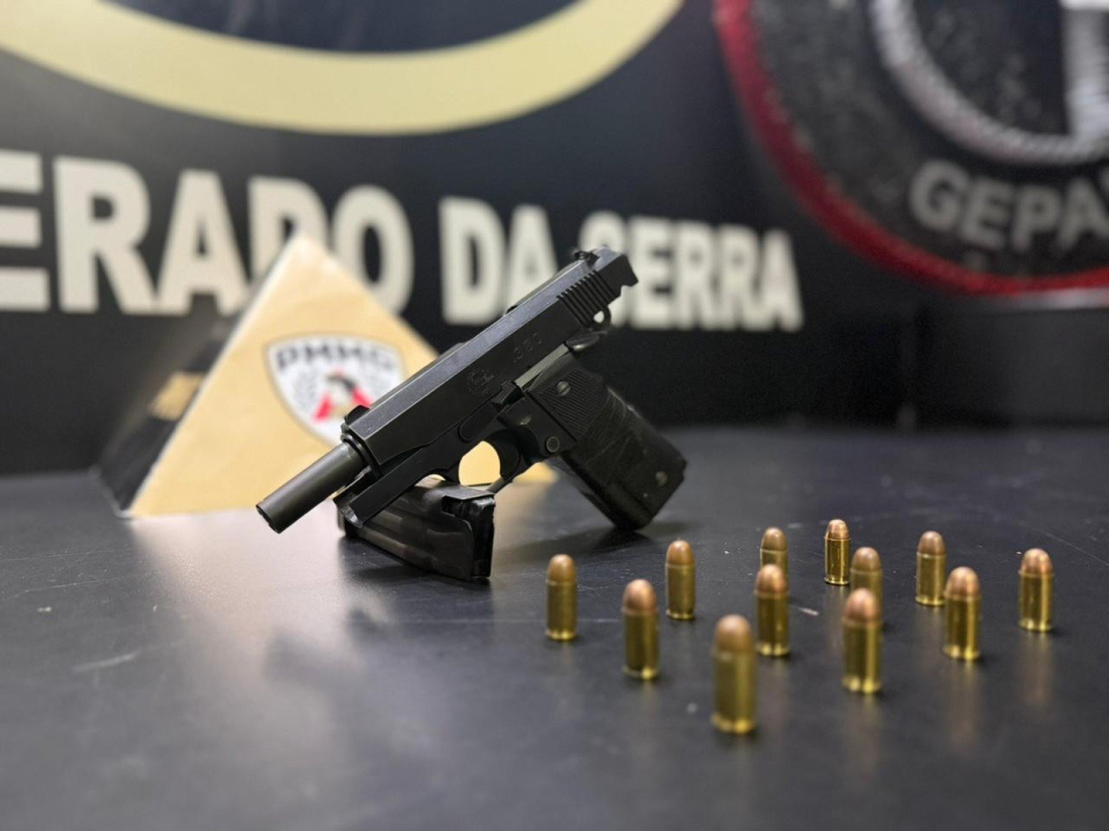 Durante a abordagem, os militares apreenderam uma pistola calibre .380 e 12 munições intactas. O suspeito e os materiais recolhidos foram encaminhados para a delegacia para as providências da polícia judiciária.