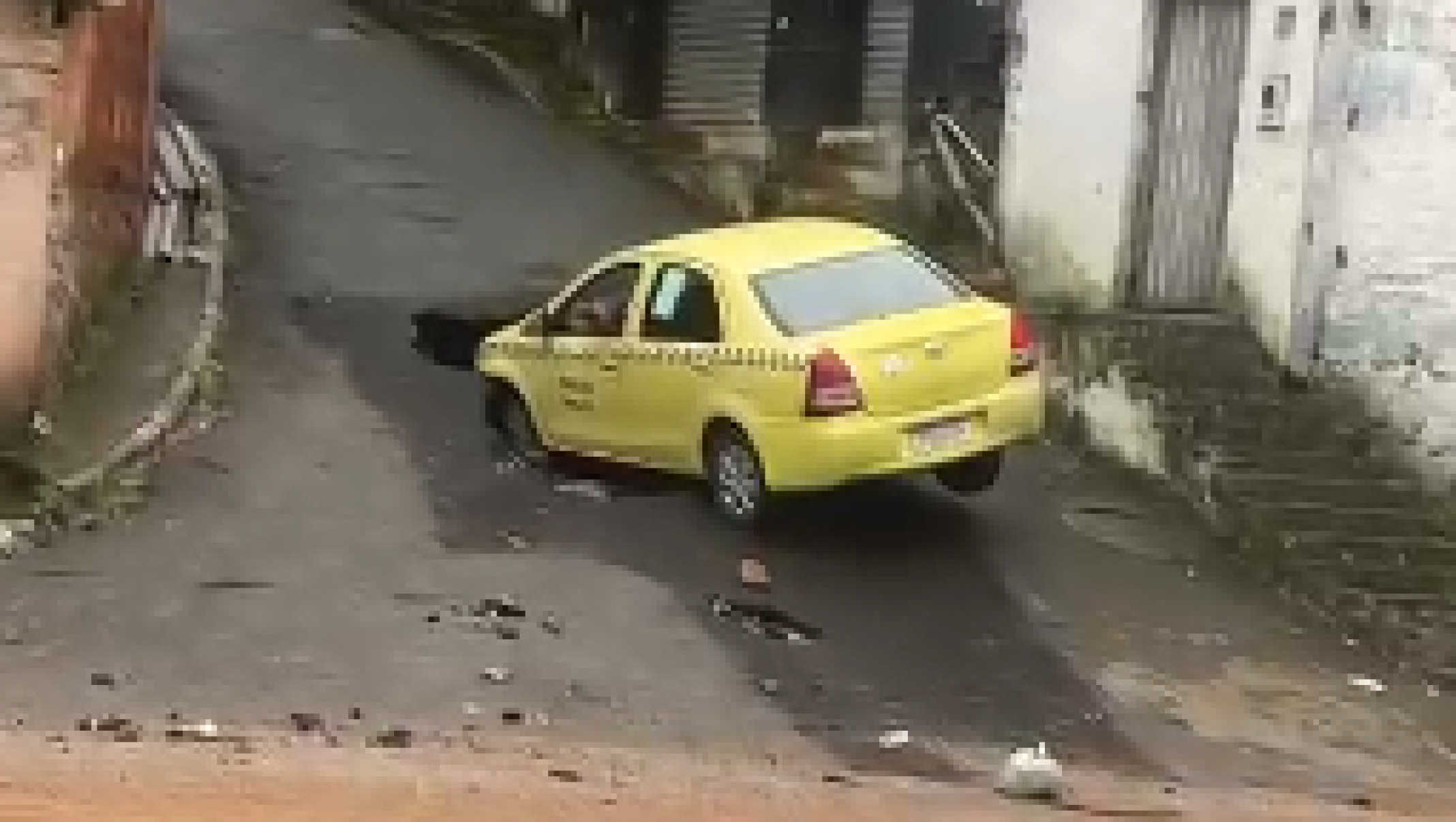Um buraco se abriu em uma rua do Bairro Vila Ideal e “engoliu” um carro na manhã desta terça-feira (24/2), em Juiz de Fora (MG), na Zona da Mata mineira. A cidade foi atingida por uma chuva histórica na noite de segunda-feira (23/2).