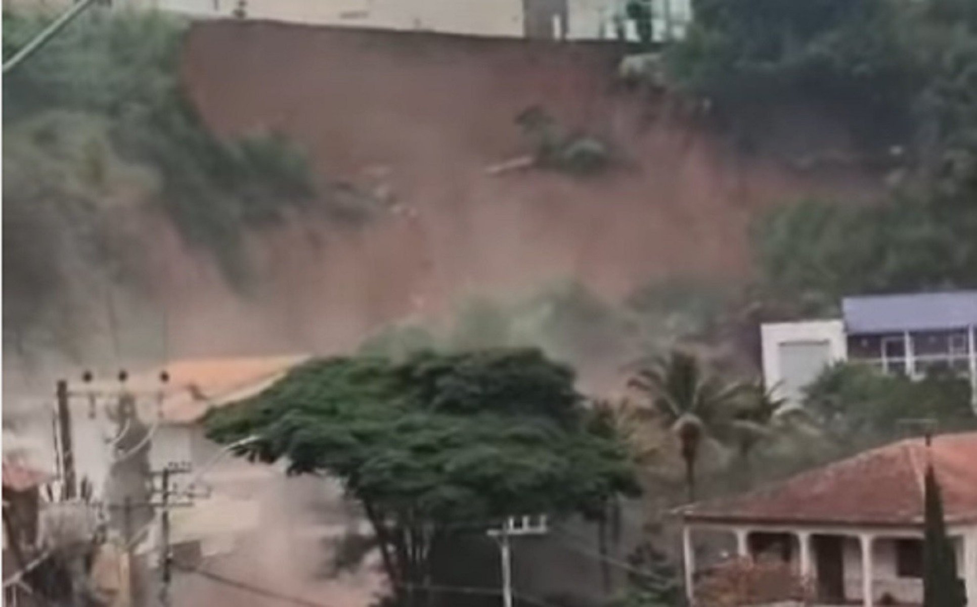Moradores fizeram postagens e relatos nas redes sociais logo depois que o deslizamento ocorreu. As imagens mostram um grande escorregamento de terra em uma encosta, localizada em uma área residencial da cidade.