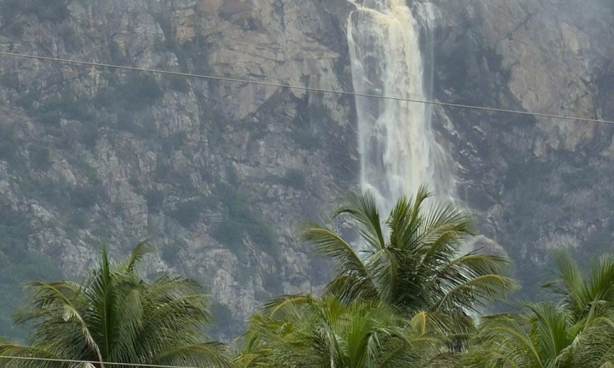 Enquanto parte da população vive apreensiva com rompimento de barragem, outra aprecia aumento do volume da Cachoeira do Serrado
