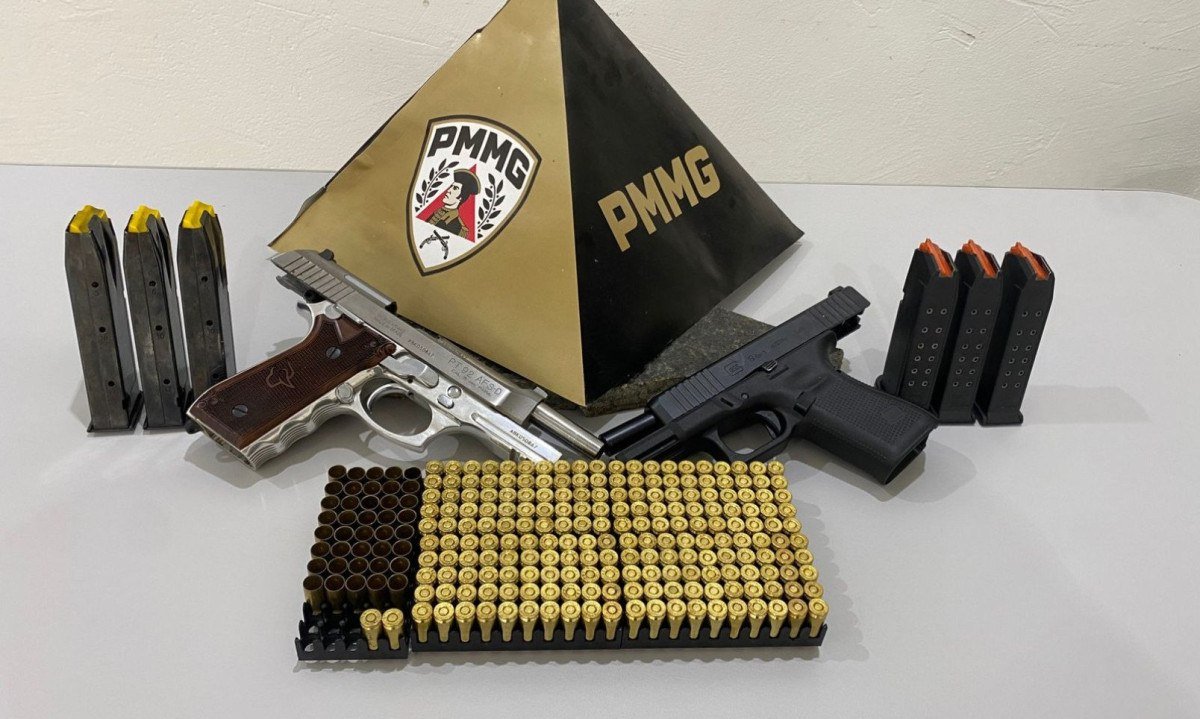 Em outro quarto da residência, os militares encontraram um cofre. Após contato com o proprietário por chamada de WhatsApp, ele repassou a senha, permitindo que os policiais abrissem o compartimento. No interior foi localizada uma pistola Glock calibre 9 milímetros, além de munições. Ao todo, foram apreendidos seis carregadores, 202 munições intactas e 40 cartuchos deflagrados.