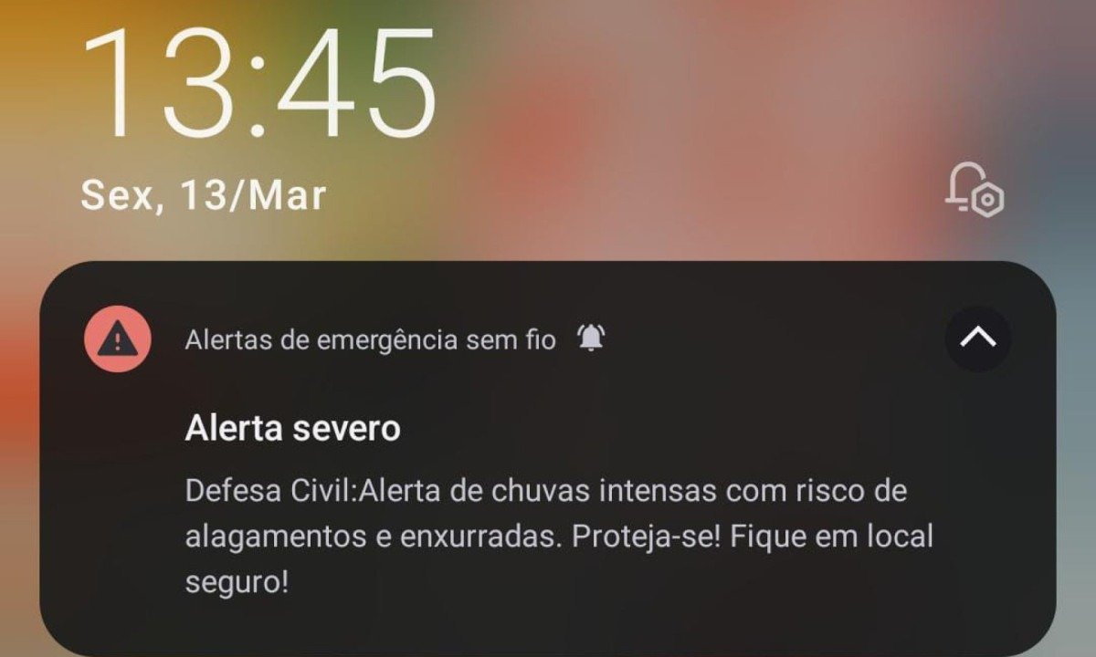 Belo Horizonte está sob alerta de chuvas intensas na tarde desta sexta-feira (13/3). O comunicado foi emitido pela Defesa Civil e chegou "apitando" nos celulares dos belo-horizontinos.