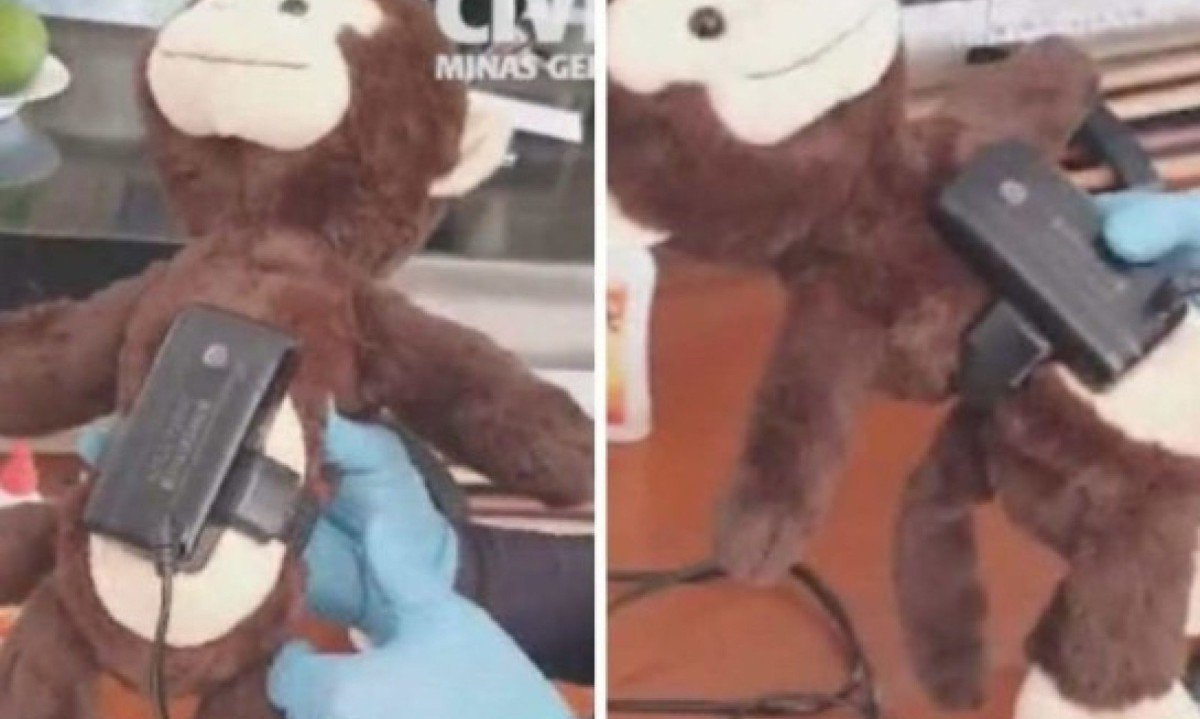 A tornozeleira de “Mancha” foi encontrada em busca e apreensão realizada em 2024. A Polícia Civil de Minas Gerais (PCMG) acredita que o suspeito usava o bicho de pelúcia para driblar o monitoramento da Justiça.