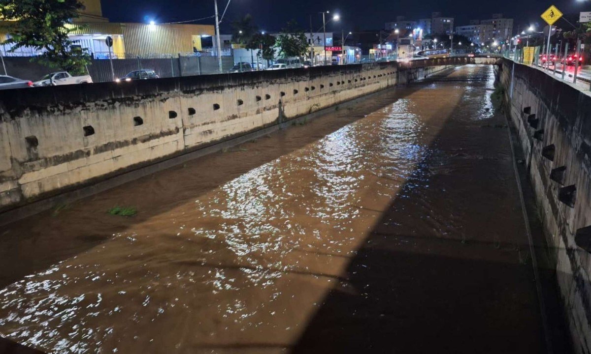 Ponto de atenção para alagamentos e inundações durante o período de chuvas, o ribeirão na Avenida Heráclito Mourão de Miranda, na Região da Pampulha, em Belo Horizonte, registrou aumento de volume de água na noite desta quinta-feira (19/3). O registro foi feito pela reportagem do Estado de Minas.