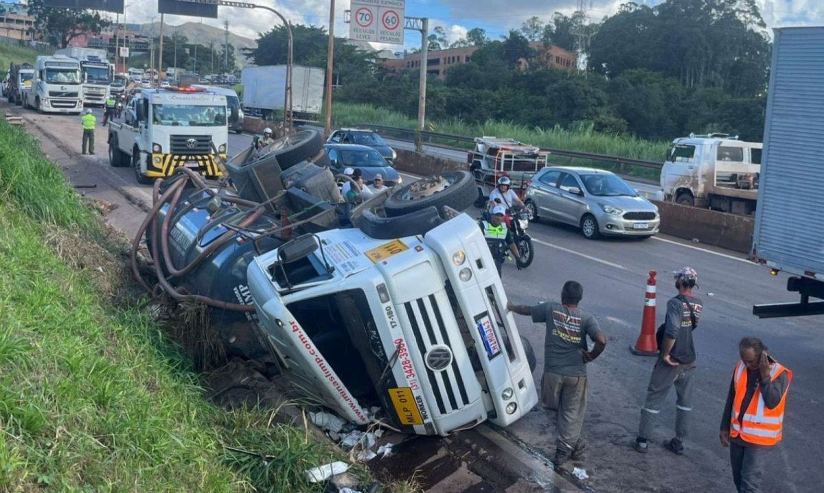 Um tombamento de carreta ocasionou congestionamento do Anel Rodoviário nesta tarde de quinta-feira (26/3). O automóvel tombou na via expressa na altura do Bairro Betânia, Região Oeste de Belo Horizonte (MG).