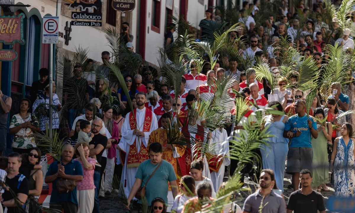 O Domingo de Ramos (29/3) levou milhares de pessoas às ruas de Ouro Preto, na Região Central do estado. Eram 8h30, quando houve bênção e distribuição de palmas e ramos na Igreja Nossa Senhora do Carmo. Na sequência, fiéis participaram da procissão, que celebra a entrada triunfal de Jesus em Jerusalém, até a Basílica Nossa Senhora do Pilar. A missa está prevista para começar às 18h.