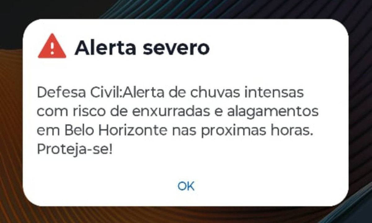 BH está sob alerta severo de chuvas intensas, com risco de alagamentos