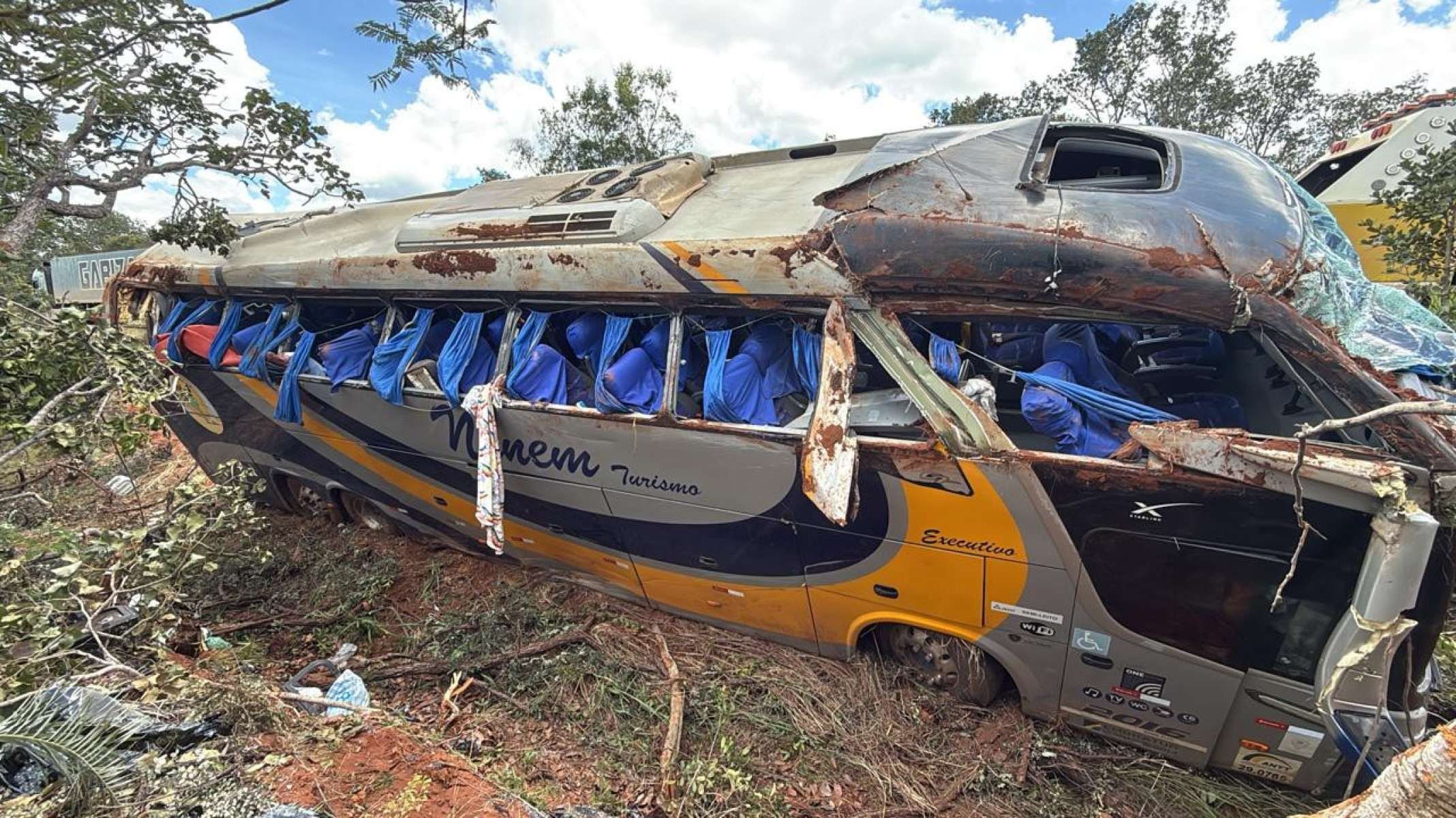 O ônibus envolvido no acidente pertence a uma empresa de turismo de Feira de Santana (BA). De acordo com informações da Polícia Rodoviária Federal (PRF), no coletivo viajavam 50 pessoas, sendo dois motoristas, um ajudante e 47 passageiros.