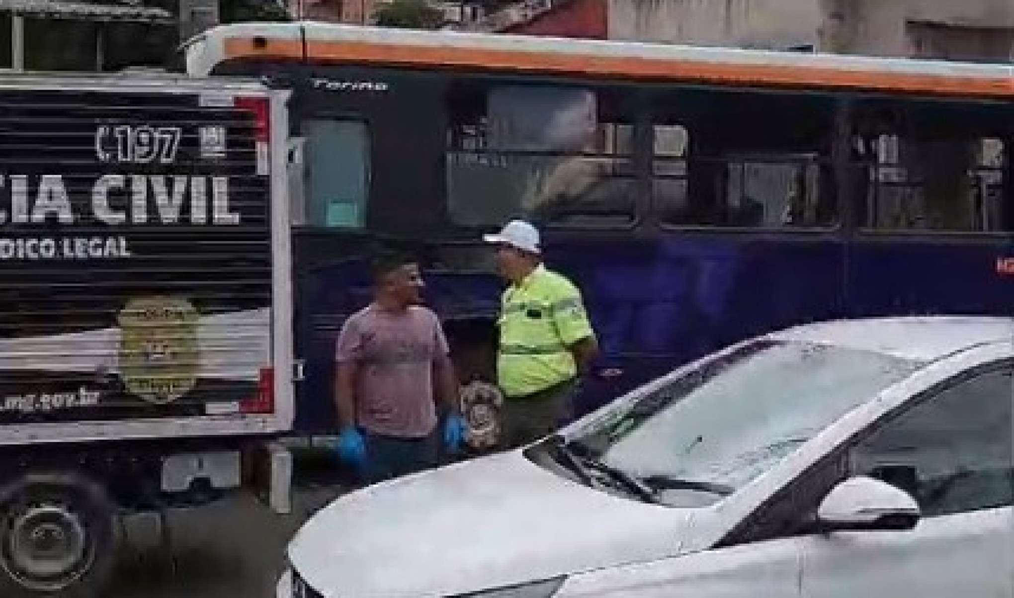 Um guarda de trânsito aparece organizando o fluxo de carros, que segue normalmente. No vídeo um veículo do Instituto Médico Legal (IML) também compareceu ao local.
