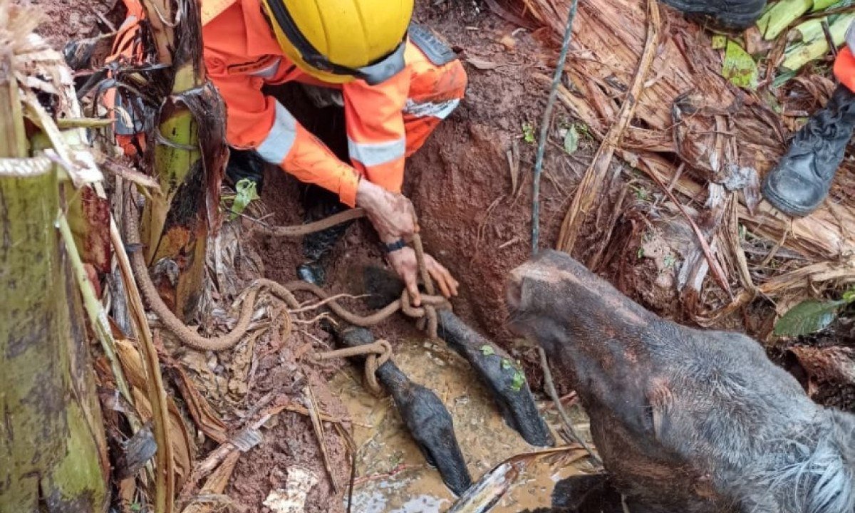 Animal ficou com as patas traseiras presas e precisou da ajuda dos bombeiros para ser retirado; veja o vídeo