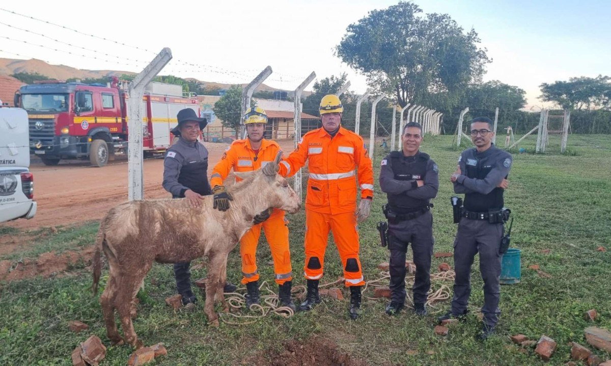O jumento foi retirado com vida, apenas com escoriações leves.
