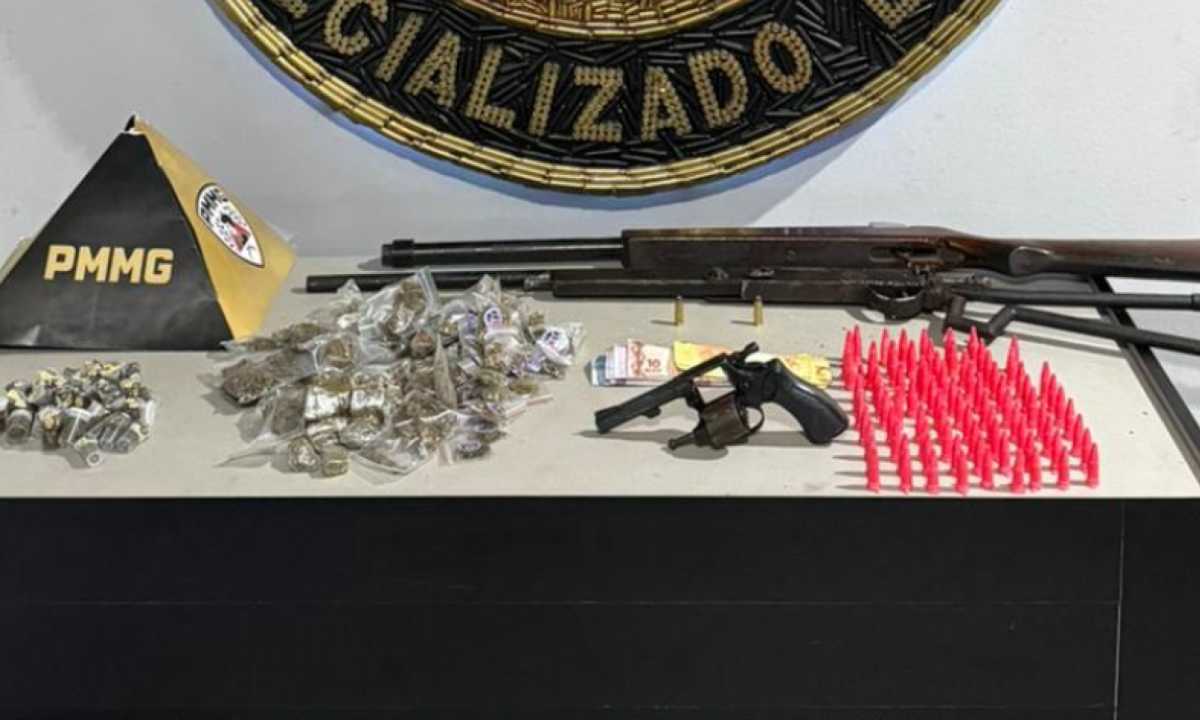 Durante as buscas, foram apreendidos um revólver calibre .32, duas escopetas, duas munições do mesmo calibre, 151 buchas de maconha, 86 pinos de cocaína e R$ 176 em dinheiro.