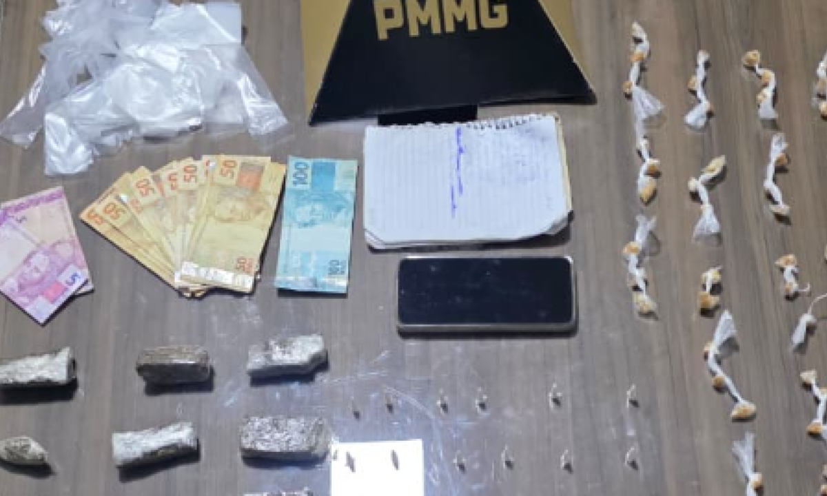 Com ele, foram encontrados tabletes de maconha, porções de crack, pinos de cocaína, dinheiro e um celular. Em seguida, o próprio suspeito indicou outros pontos onde havia mais entorpecentes escondidos, incluindo uma sacola pendurada em uma árvore do cemitério e materiais dentro de uma panela de pressão em casa próxima.
