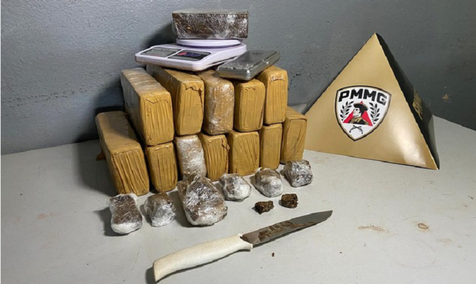 A idosa atendeu a equipe e disse que tinha apenas uma pequena quantidade para uso próprio. Durante buscas, porém, os policiais encontraram um quarto trancado nos fundos da casa. Dentro de um guarda-roupa, havia uma mochila com 13 barras de maconha e outras porções menores.