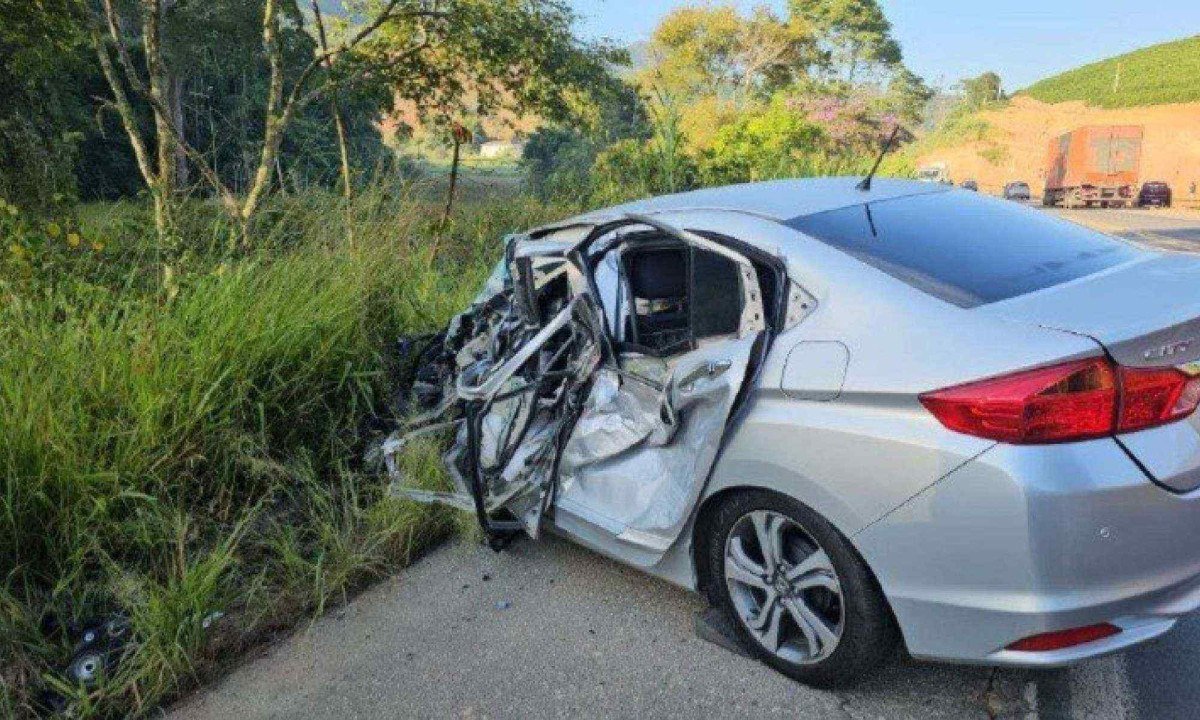 Com o impacto da batida frontal, o caminhão saiu da pista e o carro ficou às margens da rodovia. A corporação informou que não se sabe a dinâmica do acidente. Além dos danos na frente do carro, modelo Honda City com placa de Belo Horizonte, o lado do motorista ficou completamente destruído, com danos também na porta do passageiro de trás.
