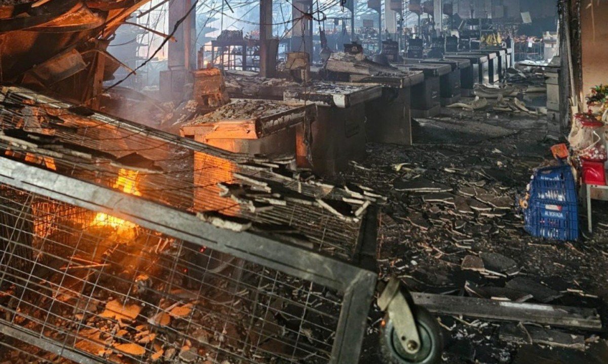 O estabelecimento fica situado em um polo comercial denso, próximo a farmácias, agências bancárias e clínicas médicas, que estiveram também ameaçadas pelas chamas.