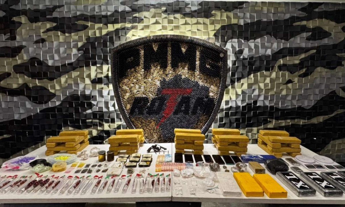 Durante a operação, os militares apreenderam uma grande quantidade de entorpecentes, incluindo 41 barras de maconha, 9 barras de cocaína, porções de drogas sintéticas como ice, crumble e dry, além de 1.342 comprimidos de ecstasy e 33 frascos de lança-perfume.